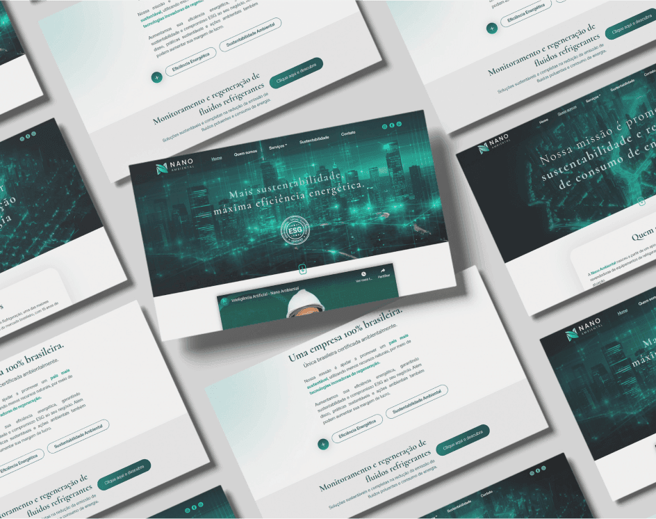 Startup com foco em ESG, a Nano Ambiental escolheu a Whop para a construção do seu logo, identidade visual, e desenvolvimento do site.